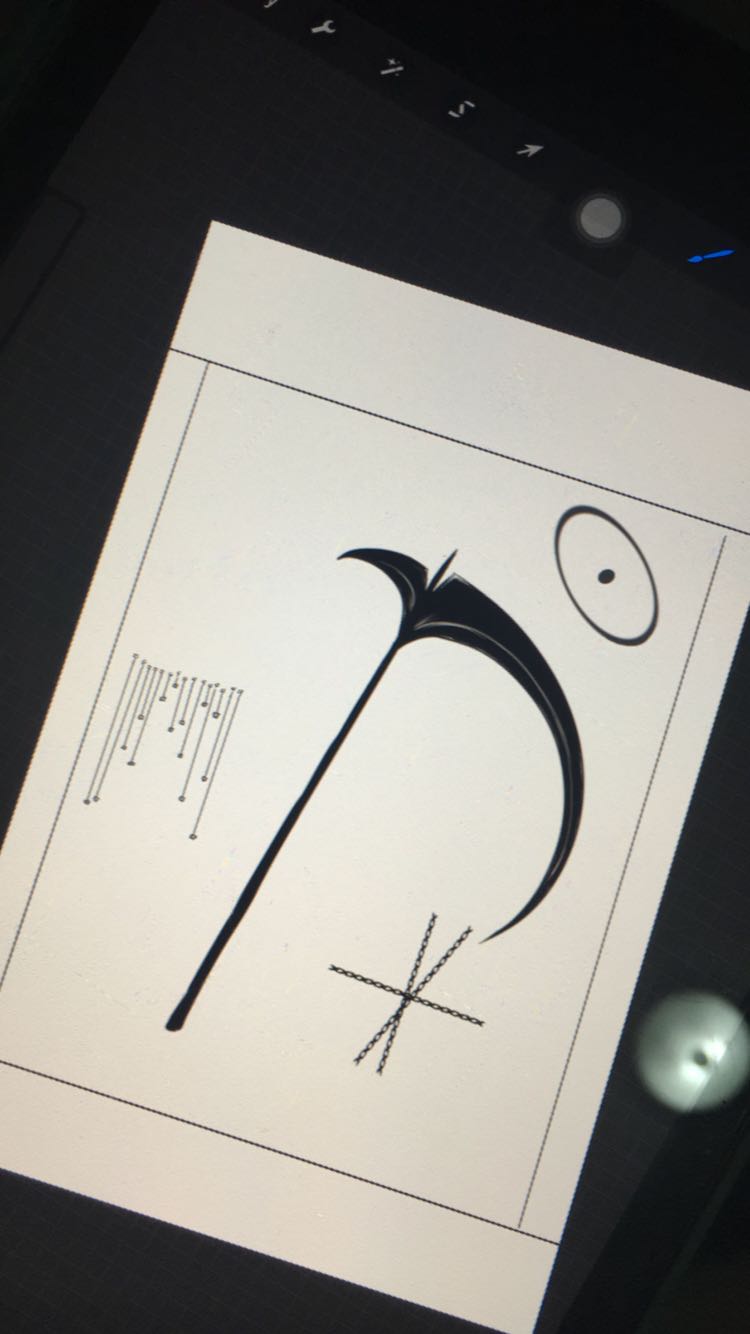 I did not like the 3 scattered rune version :D Scythes are traditionally shown UP or Down, not at an angle my 2 lead pennies :p |