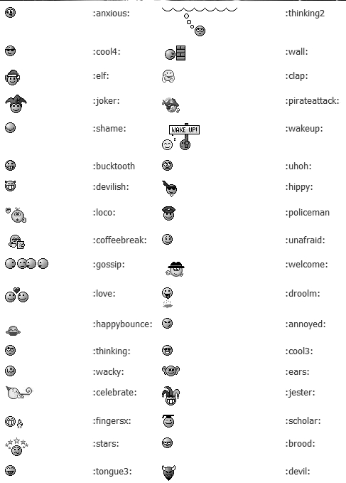 I tried to capture the best moment of the moving ones, but it's hard to time it with 10 animations running simultaneously, so if a smiley dosn't look quite up to the :name:, it's probably me