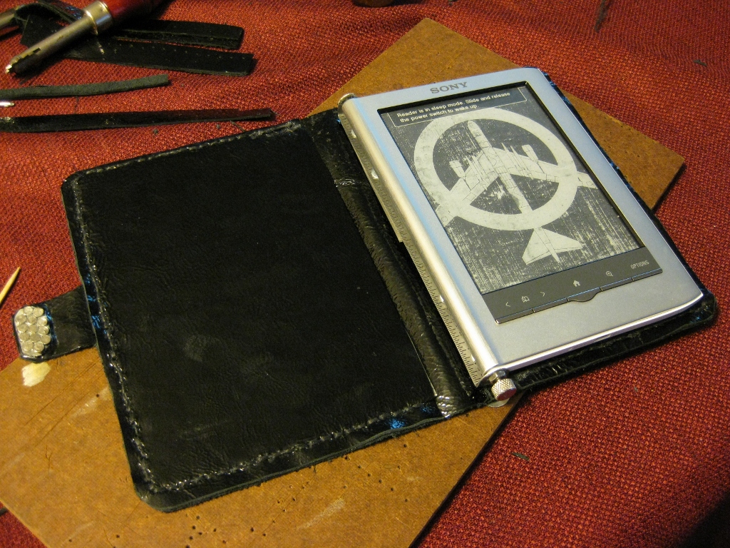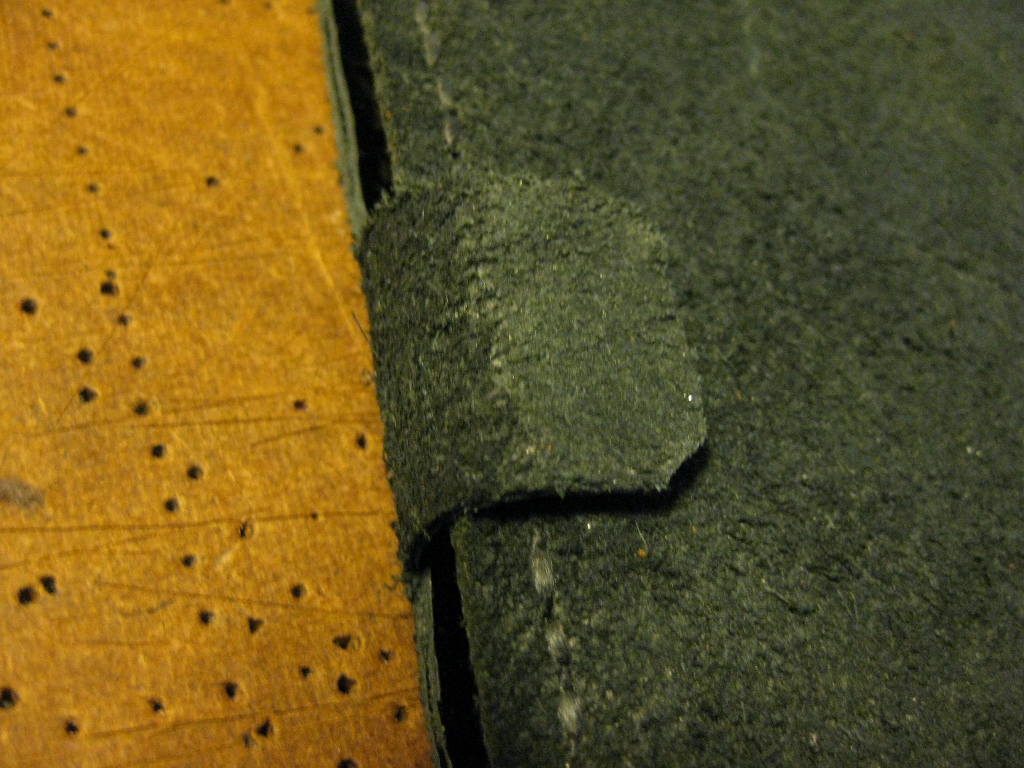 The outer cover is a single piece of leather, with a tab left for closure. The other two pieces of leather cover the cores.