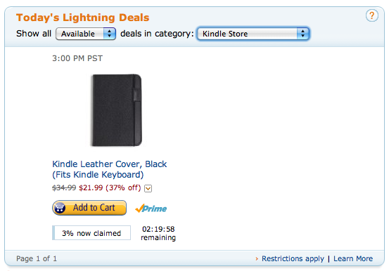 The Amazon Kindle Leather Cover is on a lightning deal on Amazon for $21.99 (37% off) for the next couple of hours.