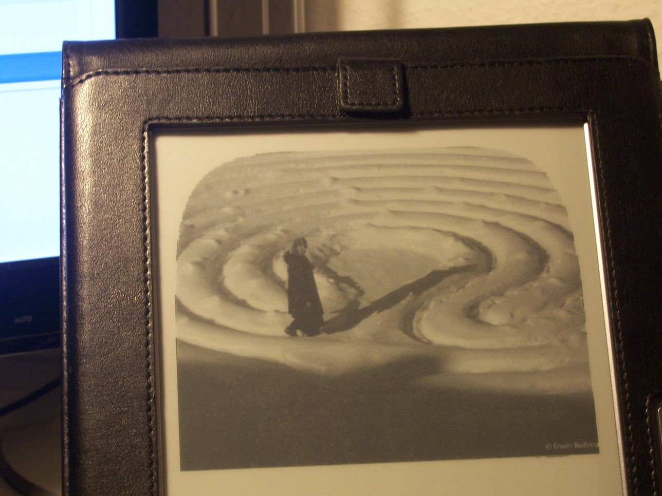 hier). Das Gerät ist vom Leder voll eingefasst und ich muss sagen, bei hartem seitlichen Lichteinfall (Leselampe am Bett) werden durch das Leder schon mal 5 mm vom Rand her abgeschattet. Ist jetzt nicht sooo das Problem aber ein wenig stört es schon.