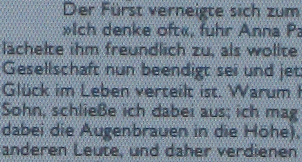 I'm not sure what you're trying to show here. Screenshots taken on a device don't necessarily represent what you see on the screen, and your scan on the smallest zoom shows that lower case letters get about 4 pixels in height which I don't think is enough to comfortably read.