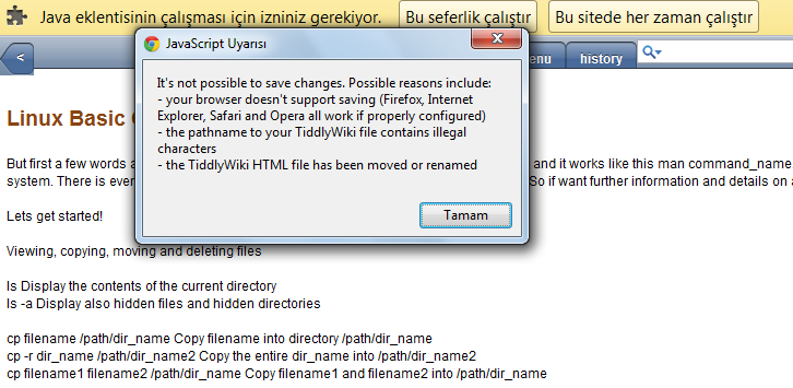 . If you use any other browser than Firefox, you will need to click here, save the TiddlySaver file to the same folder (TiddlySaver is a Java applet that allows you to save changes in various browsers that don't support saving changes to local files). Finally, close this webpage and open your saved TiddlyDu3 file to begin using and editing it.