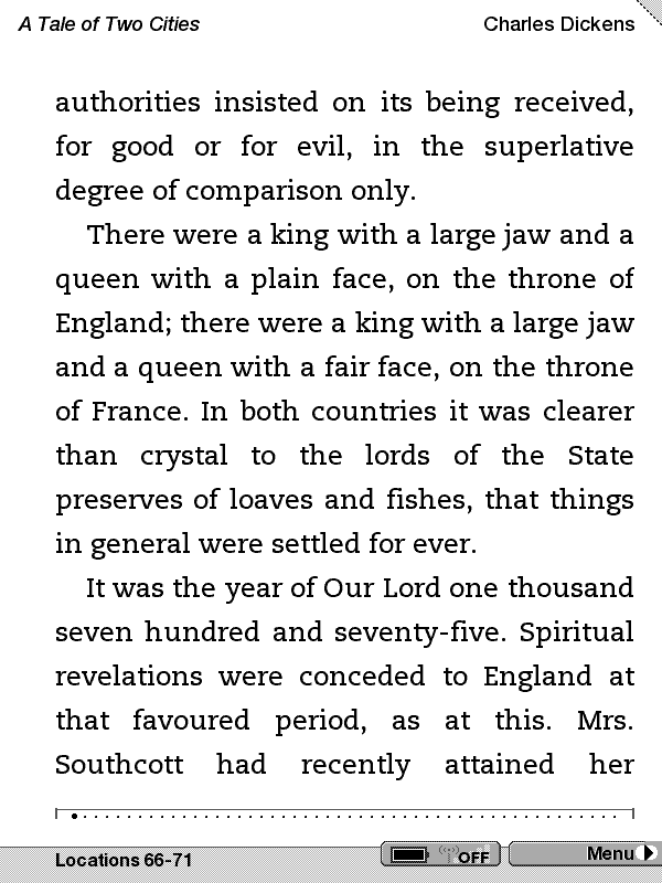 So I enclose a couple of basic 600x800 skins for the Emulator. Unzip skin.zip and move the contents of the skin directory to "C:\Program Files\Common Files\Mobipocket Shared\Emulator\skin". This will automatically add two skins to the Devices menu (one under Windows CE and the other under Amazon). The Kindle skin does not try to emulate most if the Kindle's keys (and crops the keyboard), but it does try to represent the screen approximately right. It uses the wrong font, but the font sizes are about right (line spacing is too small). Compare the screenshot of the Kindle emulator with the actual Kindle screenshot to see the difference. The standard small device toolbar is included to allow access to menus etcetera. Similarly, the CE600x800 skin emulates a device like an Astak 5" or 6" device. It once again does not try to handle the keys correctly, so it is a better emulation of a device with a touch screen than a more basic setup.