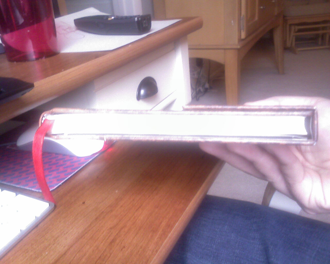 Well I made a new case a couple of weeks ago and wanted to share the results. I have already been using a home-made case for travel but I wanted something a little more elegant, so I tried making a second case, this time out of those cool journals you see at the book stores. I already had one available, so I got out the exacto knife and half an hour later I have a sweet case that is hard, durable, and classy looking.