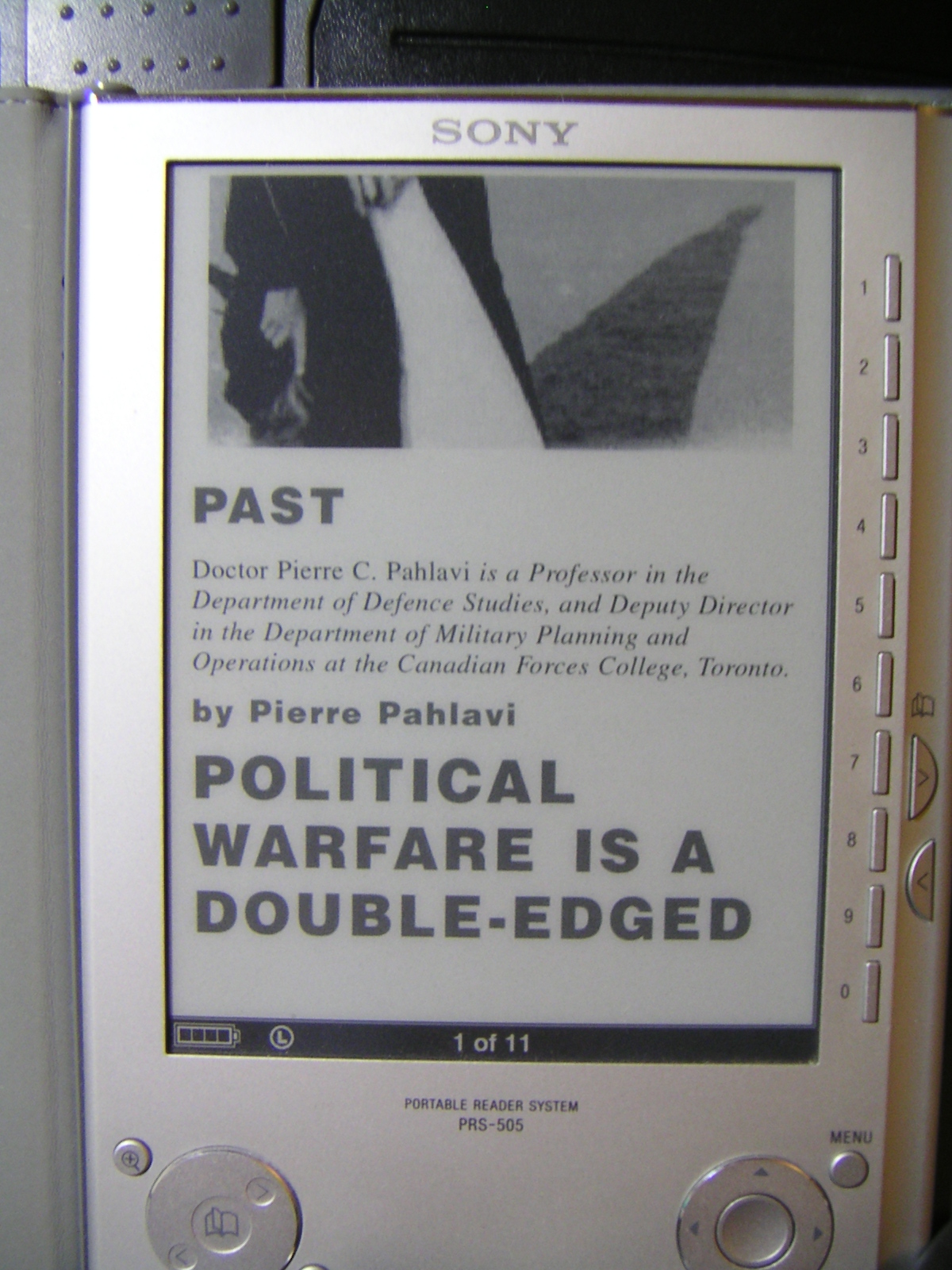 OK, attached is a publicly available PDF of the sort that I'd like to be able to read on a reader. Can anyone show me what this looks like on a Sony reader screen?