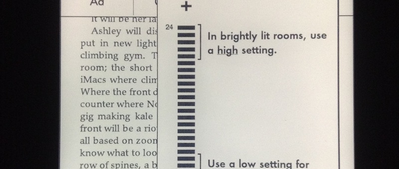 To demonstrate, here's a picture of my screen with the brightness adjustment menu over the text of my book:
