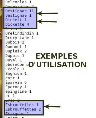 L'image ci-dessous montre l'aide à la correction que peut vous apporter cette deuxième liste.
