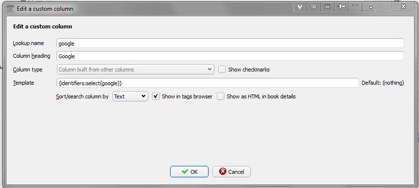 If you want to see all the Identifiers as a single column in the main book details area see first attachment, warning you may not like what you will then see in the main book details.