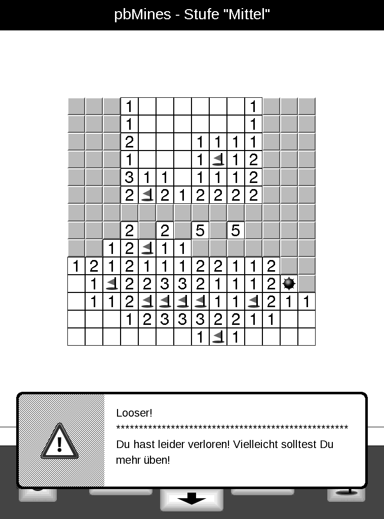 heute präsentiere ich Euch nun den Spieleklassiker Minesweeper für den PocketBook Touch Lux 623 mit drei Schwierigkeitsstufen.