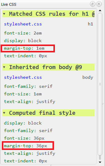 - There is something odd here. The final margin is bigger than the inherited. The preview screen does not reflect this, however.