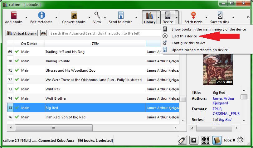 When Calibre is off, the same happens, it will not return after safe eject,until I take out the cable.
