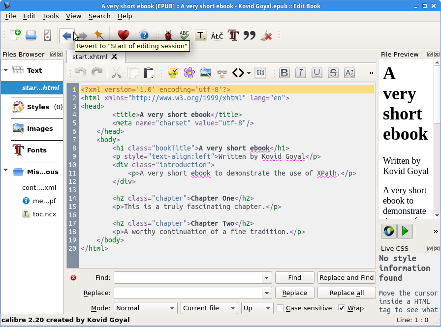 After opening a book in Edit book there is no reason to revert to anywhere. Revert to '' Start of editing session '' is superfluous at that time.