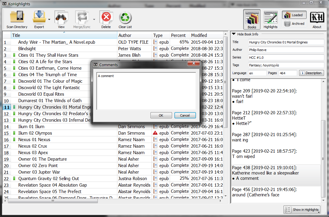 - Merge highlights from the same book that is read in two different devices and/or sync its reading position.