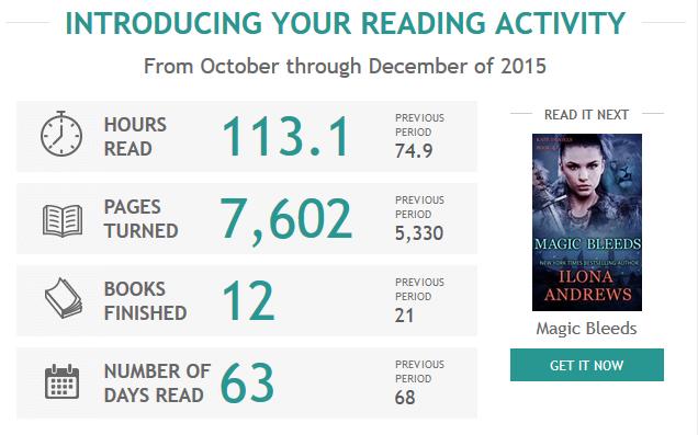 And thinking of stats, did anyone else get the reading activity email earlier in the month? I don't remember it being mentioned. It shows the stats for my reading for the previous three months. But, it is only for "Kobo eBooks", so only books I purchased from Kobo. I like it, but as it only captures maybe half of my reading, it isn't very accurate.