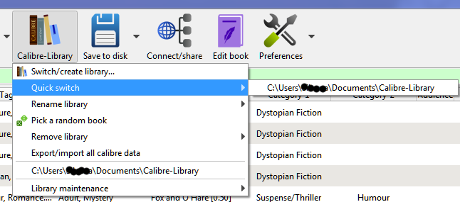 current library, I cannot rename anything as that option simply doesn't exist. Nor can I switch to anything, nor can I delete anything other than 'Calibre-Library'. The default 'Calibre Library' simply does not show up.