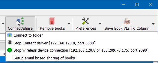 - FAQ step "Connecting for the first time": post a screen capture of the calibre Connect/Share options so we can be sure that both the wireless device and the content server have been turned on and that the ports are not the same.