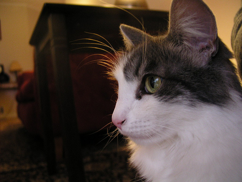 Grey and white is so much easier to photograph. Here's the foster kitty I was trying to tempt lilac with. She reminds me a little of yours.