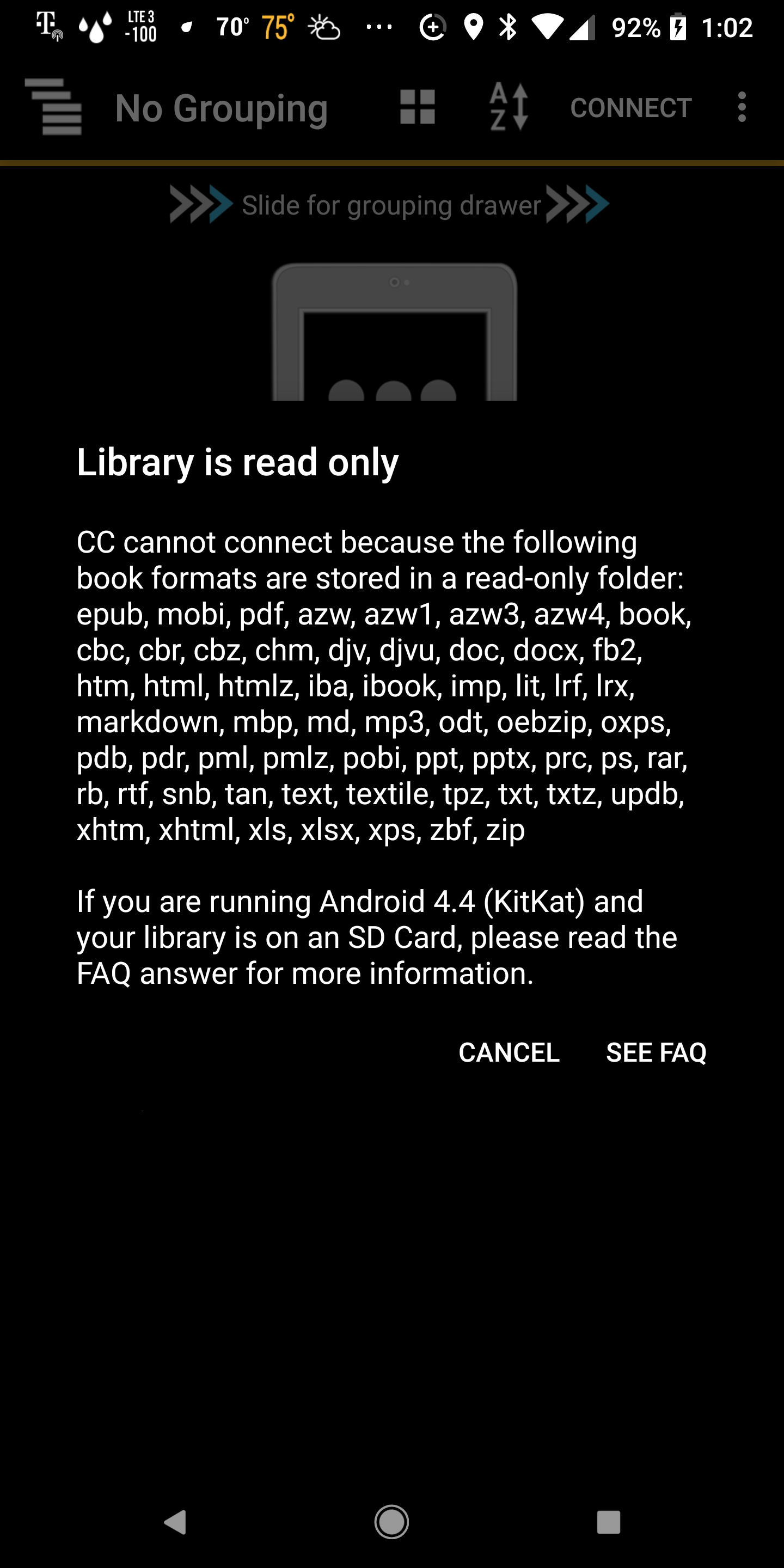 I cannot connect using my Pixel. I keep on getting the above "Library is read only"