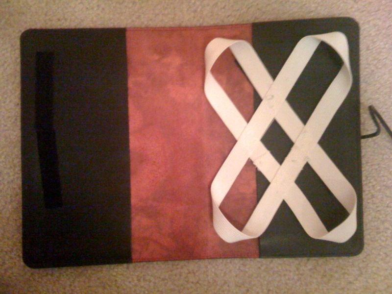Then, add sticky velcro to back. Gently press Kindle onto cover. Remove Kindle, and press harder on the velcro.