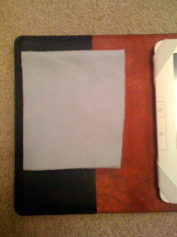 Add some felt or fleece to front cover. I only had baby blue on hand, but I may get some black to do it properly. Oh, and outside view of cover too, just so you can see the whole of this River Garden design.