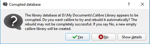 Hi, I hope this is the right place to post. Calibre was working fine until I updated, following which I receive a "corrupted database" error and an option to rebuild the database (screenshots attached), which I tried and failed with the following error: