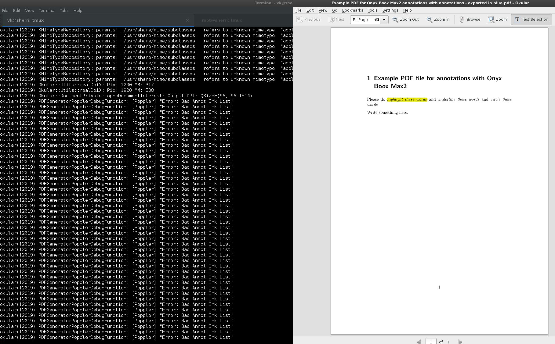 A couple of screenshots show how the files are displayed on my Debian system. The Okular screenshots also show the STDOUT output of the console.