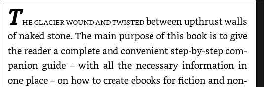 <p class="first"><span class="stand">T</span><span class="small">HE GLACIER WOUND AND TWISTED</span> between upthrust walls of naked stone.</p>
