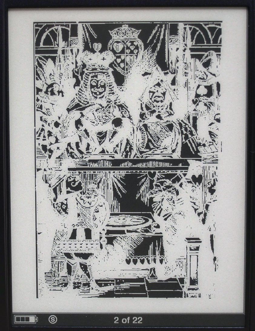 text zoomed to "M" level looks pretty good, but I cannot say the same about illustrations. They look more like negatives. I'll post pics a bit later, unless somebody else does it first.