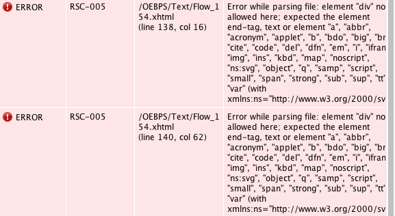 The error is on line 138 where the says: Error while parsing file: element "div" not allowed here; expected element (screen shot attached)