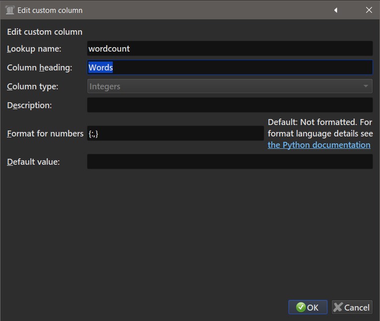 How do I format word count in custom column