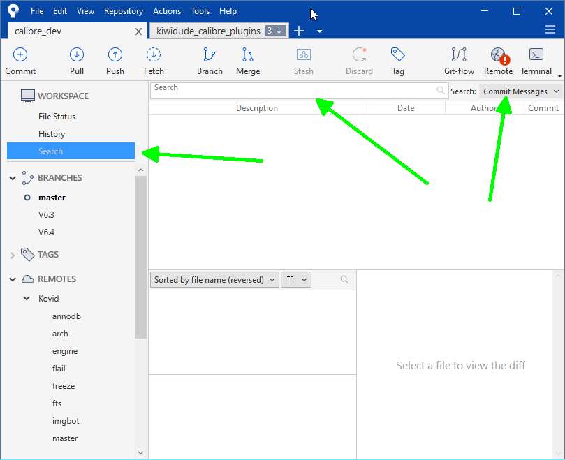 Just curious: How do you find changes? Github "log searching is not yet available." I haven't found a search in SourceTree.