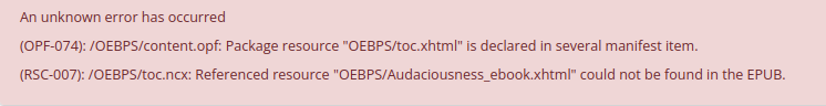 I'm trying to upload my ebook to the Ingram Spark website and have received an error message (see screenshot).