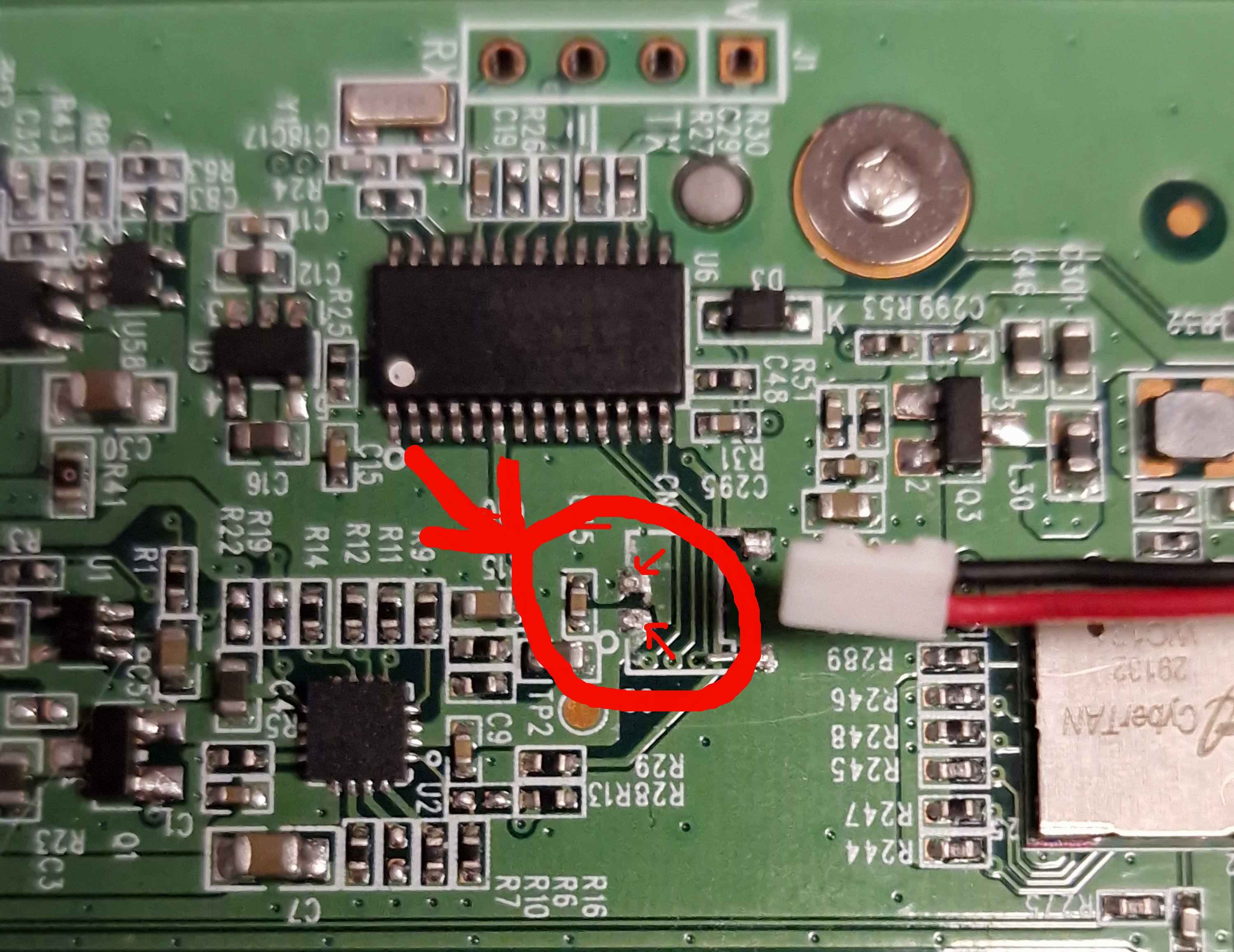 So now there are 2 tiny plates on the motherboard that someone with microelectronic tools and knowledge would easily weld to the battery cables, but not me. They are in an area less than 1 square millimeter large, as soon as I would melt tin, I would make a short circuit mess. And on Amazon microelectronic tools are more expensive than a Kobo.