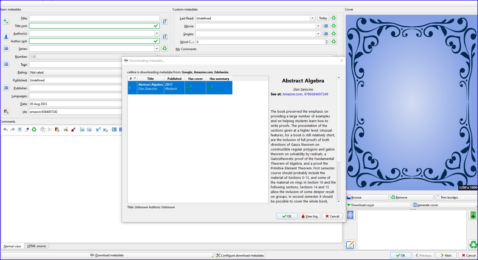 What if you removed the ISBN and all other data and added amazon:9384007242. I found it important that when trying to search using Amazon or ISBN ID's, that all other data fields are empty.