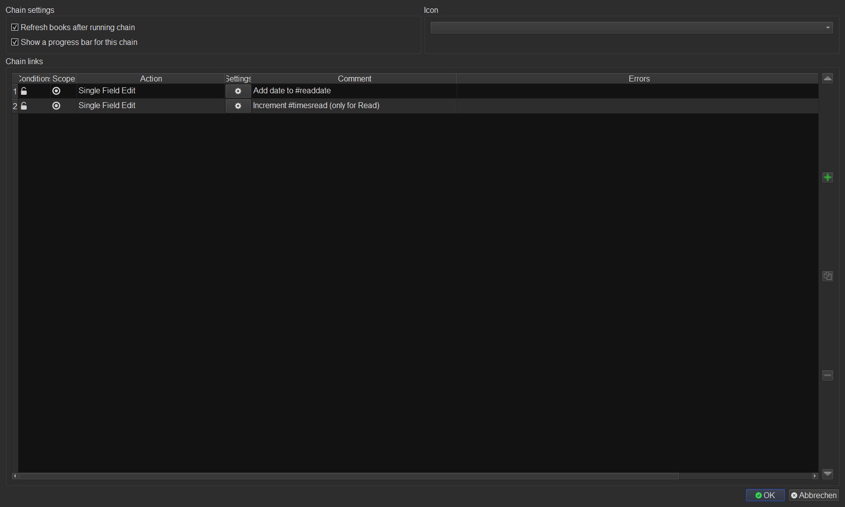 I only took what I need, incrementing #read_count and adding #readdates, but your "Mark as DNF" entry in Action Chains is still in there in the menu though.