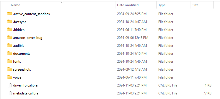 Hide protected operating system files. See the attached images. The first two are the root of my Kindle Paperwhite 10th gen's storage with and without the