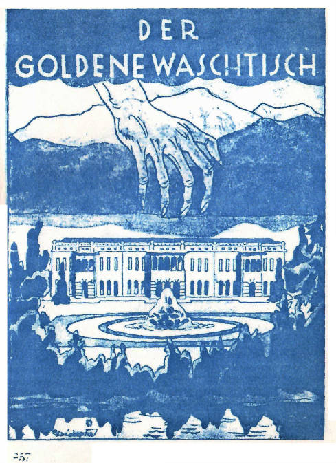 Als der Fremdenführer, der zum Leidwesen der Hälfte der Schaulustigen nur allzu stark bayrischen Dialekt sprach, im Prunkschlafzimmer König Ludwigs II. auf den goldenen Waschtisch deutete und wieder hervorhob, daß auch dieser genau wie das Prunkbett und ein Teil der Wandarabesken sehr dick vergoldet sei, — als er auf die Waschgarnitur zeigte und mit einer gewissen gewohnheitsmäßigen Feierlichkeit die Worte »Reines Gold« über die andächtig gesenkten Köpfe der Fremden hinschmetterte, hörte ein kleiner Mann mit einer dicken Knollennase in sauberer Chauffeurtracht neben sich einen klingenden Laut und schielte nach links auf die junge fesche Dame, die über dem linken Arm einen leichten Gummimantel trug und die rechte Hand in die Falten dieses Mantels versenkt hatte.