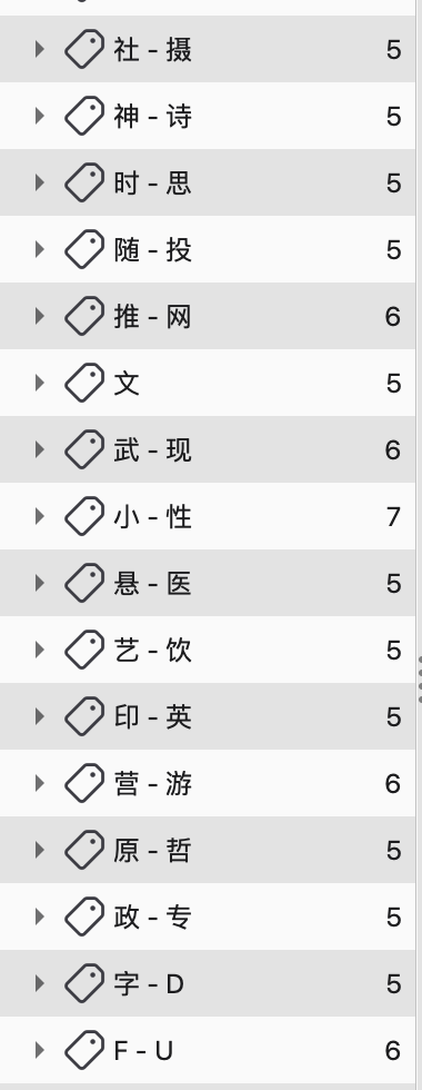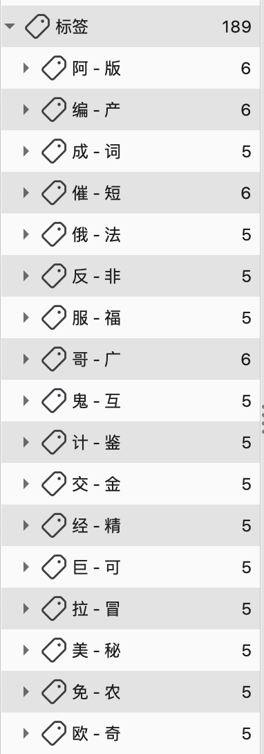 Btw, including old versions — Tags Browser in the left side bar are based on alphabetical sorting all the time (P5 & P6). But Chinese alphabet and English alphabet are displayed in separate, the English alphabet is at the bottom (P6). In my view, they can mixed together, it’s totally enough and even has a better readability, to just display in English alphabet — if it’s doable, of course.