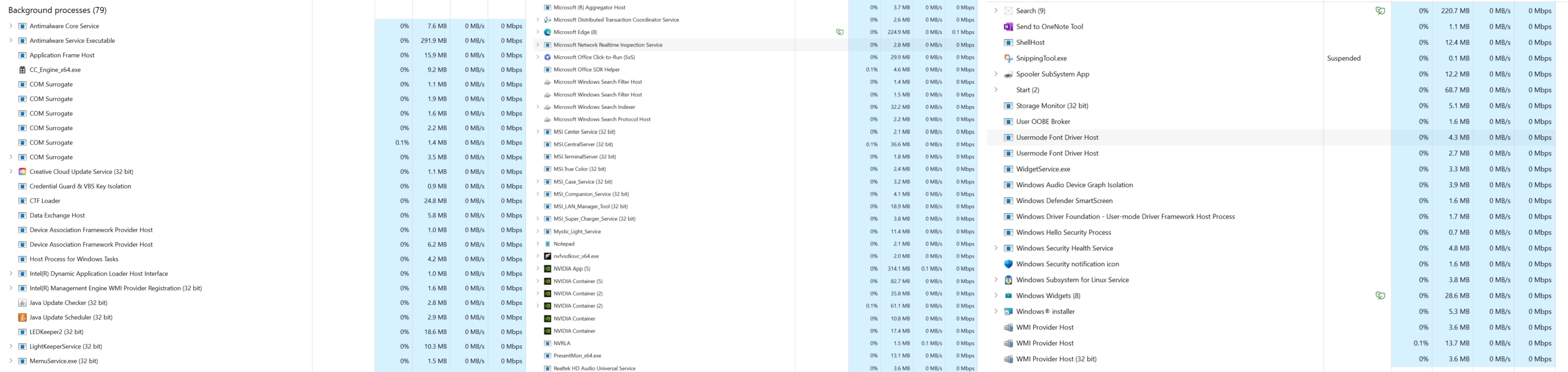 Under Processes, you can see there's not a lot running under background that isn't standard windows, and same with the processes.