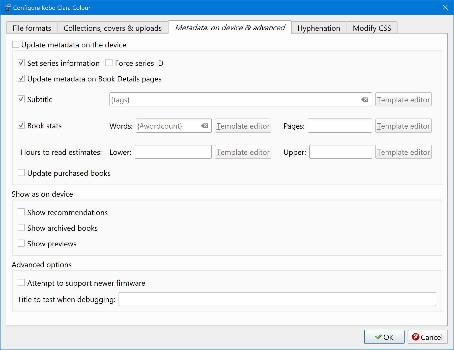 I'm using Calibre 8.4 in Win10 and a new Kobo Clara Colour. I've attached shots of my KoboTouch driver config--I turned off everything I thought would make a difference.