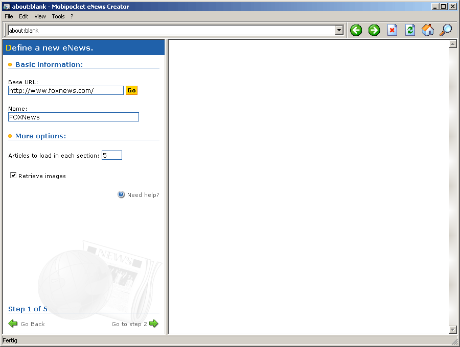 http://www.foxnews.com/), name it, limit the number of articles we want to download, and choose to include images (