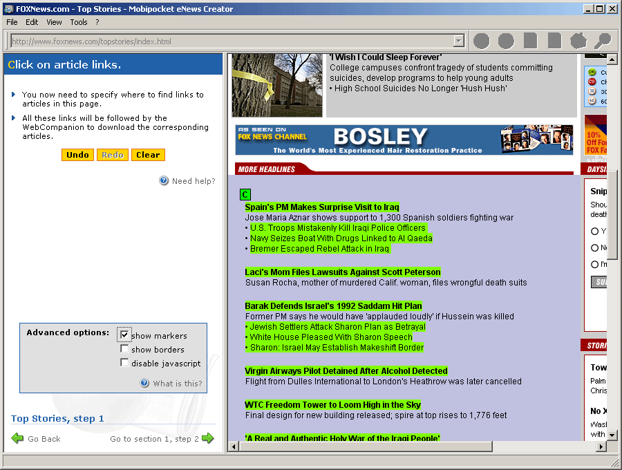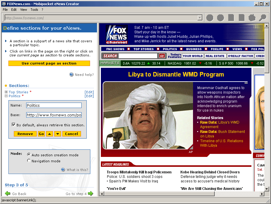 snapshot12). In general, choosing the article link area for each section, and the area of the article content can be a pain. It would be a good idea if Mobipocket added an option which gives the user the choice to unify webpage selection under all sections, since most websites keep a constant layout structure. As mentioned, after creating the eNews file you can preview your extraction with the emulator (