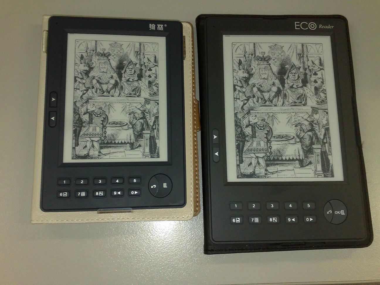 Attached photos of iLiad BE, V5 and ECO Reader displaying Jellby's Alice in Wonderland (thanks, Jellby!)