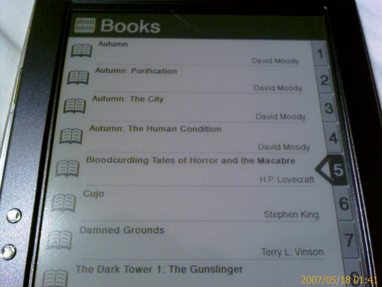 So now I can flip pages with the joystick and I changed the font size for the book index and menu so I can see the longer titles complete. Also it gives a cleaner look than when you have a short book title with a bigger font and a long book title with a smaller font.