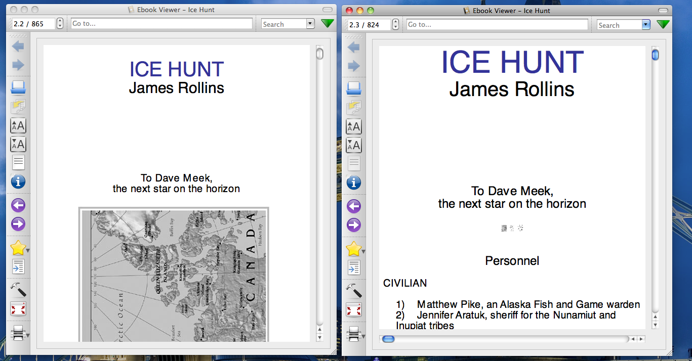I am not sure if it is an issue on my part but here we go anyhow. I bought Ice Hunt from James Rollins in lit and converted to mobi. The conversion looks great on the Kindle but look how it looks on the viewer. The pictures are small small small.