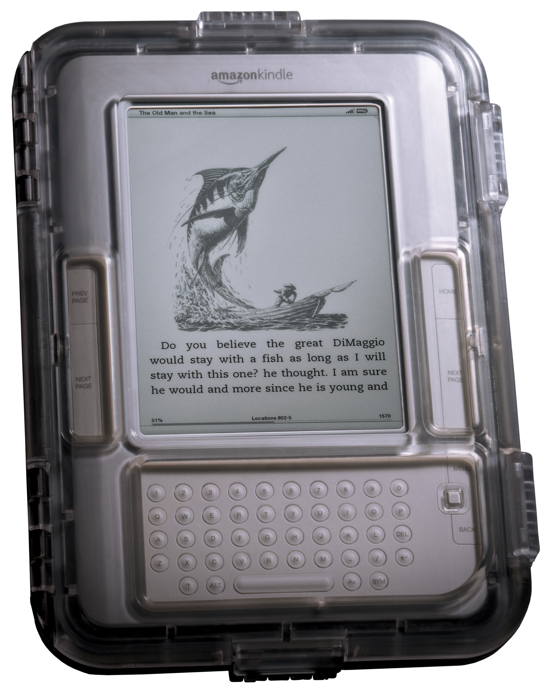 The company says the Guardian has a secure, watertight seal around Kindle by “utilizing a dual-hinge, integrated gasket and four-latch closure system,” while three internal buoyancy chambers provide keep Kindle afloat and upright for in-water reading. Since the Guardian floats upright, M-Edge suggests reading hands-free while wading in the water. Why? Well, because now you can so why not. The Guardian Case also allows for full functionality of Kindle’s navigation buttons and keyboard through its flexible sealed button cutouts.