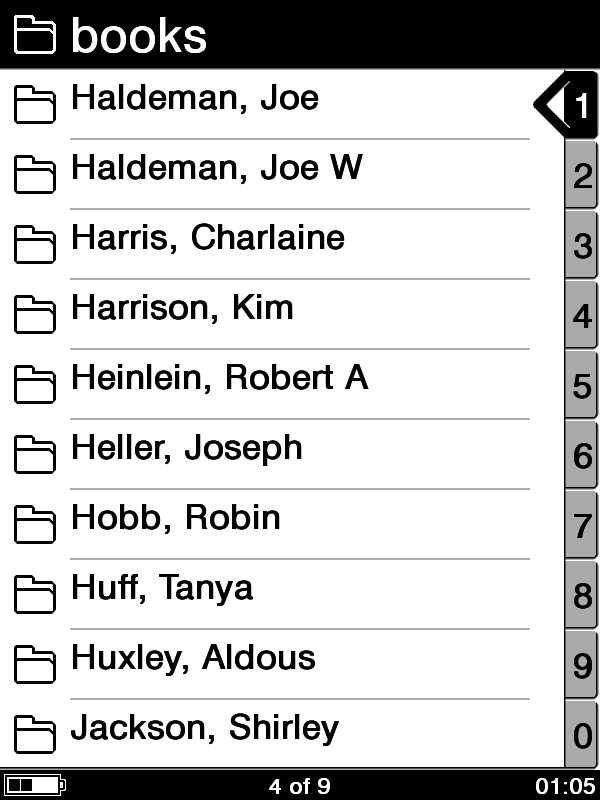 PRS+ on my 505 which allows me to browse the actual folders on the device. When I use the Browse Folders option and drill down to the authors they are indeed Last name first. See attached images.