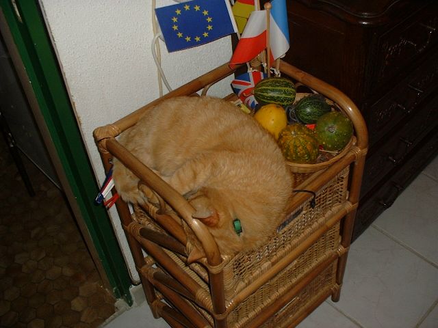 Un bon gros matout nommé PetitBout (qui est dévénu "Tibou"), oui il était le plus petit de la porté! Il était tout gentil tout plein qui savait donner la patte (sisi) voleur comme pas possible, mangeait a table (c'était meilleurs que dans la gamelle