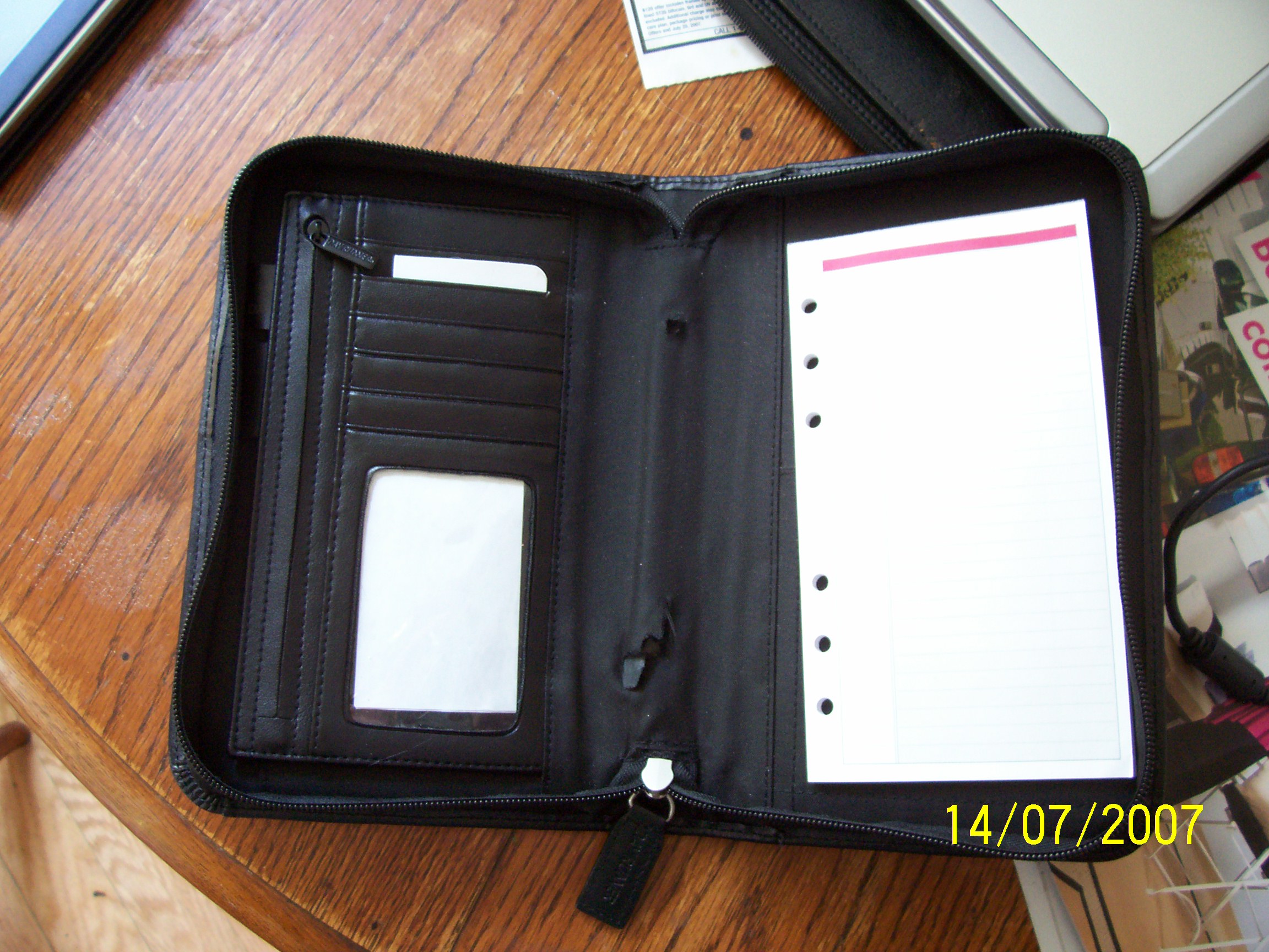 If you look at the pictures, you'll see that it is a simple black leather case and that I have already ripped out the rings already. I had to remove them, otherwise there wouldn't be enough room for the Reader. I have finished the case. I decided to use a heavy duty elastic strap I found in the sewing dep't. at Walmart. Last edited by Nate the great; 08-02-2007 at 11:41 AM. |